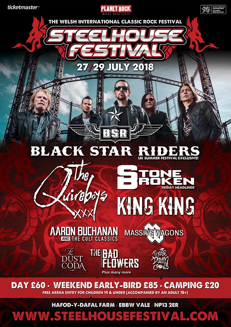 Over the moon to announce that we will be part of 2018’s Steelhouse Festival along with Black Star Riders, The Quireboys - This Is Rock And Roll, Stone Broken, King King and many more‼️‼️